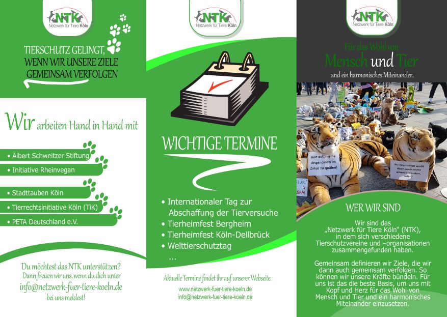 Mit der Hilfe vieler Kölner Tierschützerinnen und Tierschützer wird das NTK am Rosenmontag in Köln (24.02.2020) Pferde mit ihren Reitern im Rosenmontagzug vom Aufstellungsplatz bis zum Zugende begleiten. Über Filmaufnahmen werden das Verhalten der Reiter und die Qual der Pferde dokumentiert. Ziel ist es, mit der juristischen Unterstützung der Deutschen Juristischen Gesellschaft für Tierschutzrecht e.V. jeden dokumentierten Verstoß gegen das Tierschutzgesetz anzuzeigen. Weder der Rat der Stadt Köln noch das Festkomitee Kölner Karneval ist Willens, zum Schutz von Teilnehmern, Besuchern und Pferden den längst überfälligen und rechtlich gebotenen Beschluss zu fassen, auf Pferde im Karneval zu verzichten.